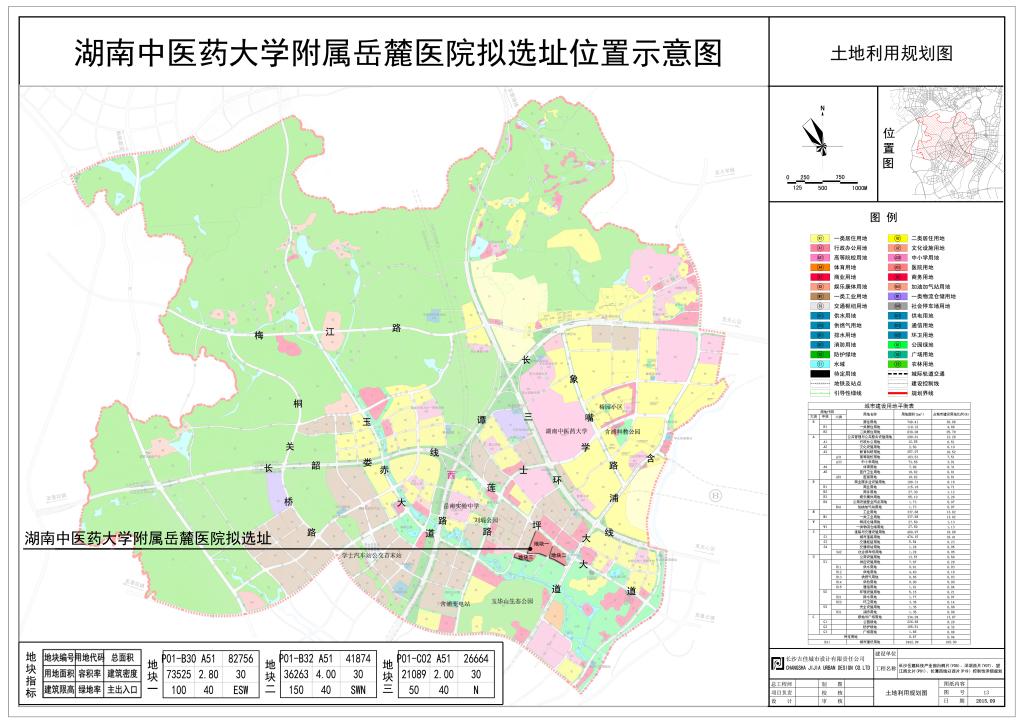 宗地三:位于茯苓冲路与琨玉路交汇东南角,总用地面积40亩,净用地面积31.6亩,用地性质为医疗卫生用地,容积2.0,限高50米,建筑密度30%,绿化率40%。该地块规划在3年内投资2亿元建设集临床教学、科学研究、产业开发和业务培训等功能于一体的产学研中心。